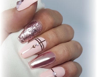 White Rosegold Press On Nails Acrylic Nails Coffin Nails Etsy