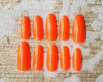Neon Orange Coffin False Nails Etsy